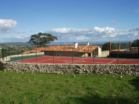 Campo de ténis, pérgula de jardim, estacionamento e quintal.