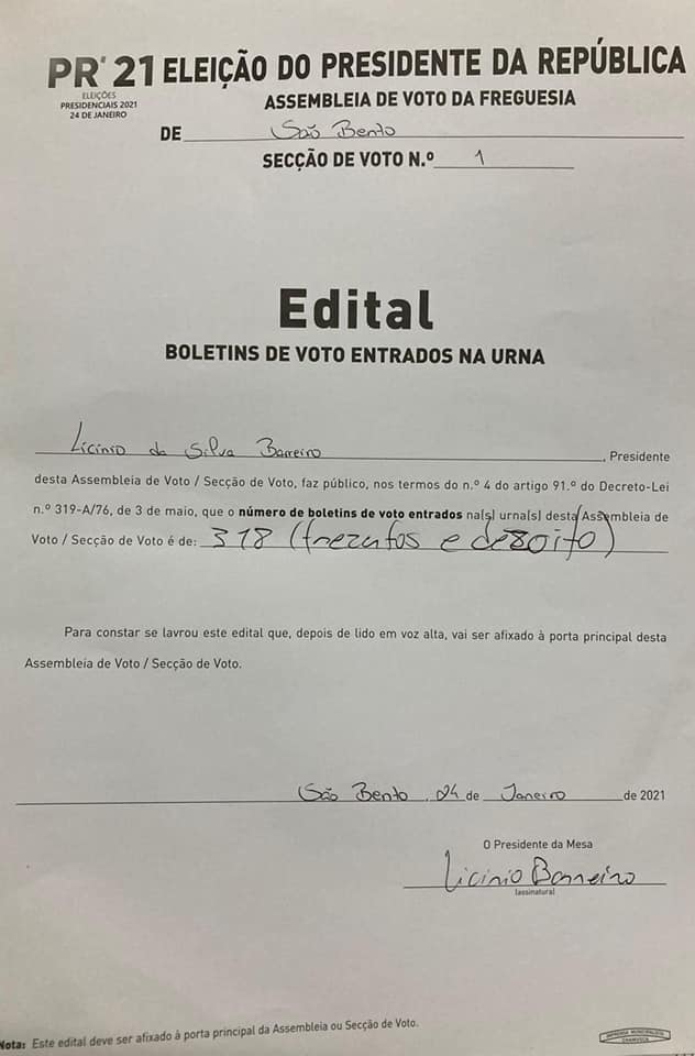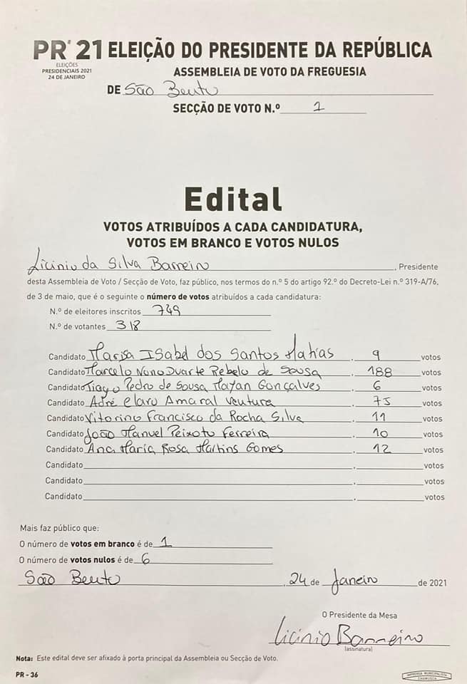 Consulte em baixo os resultados eleitorais da Freguesia de São Bento - Porto de Mós.
